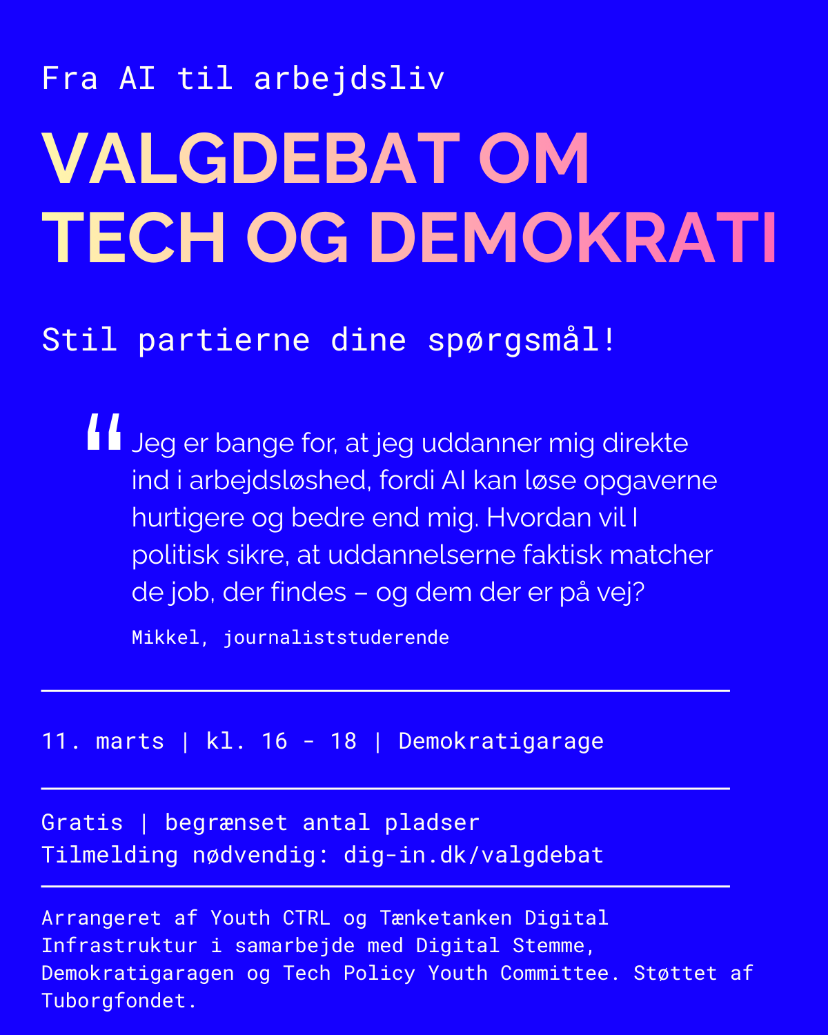 VI BESTEMMER SELV: “Fra AI til arbejdsliv” valgdebat om tech og demokrati
