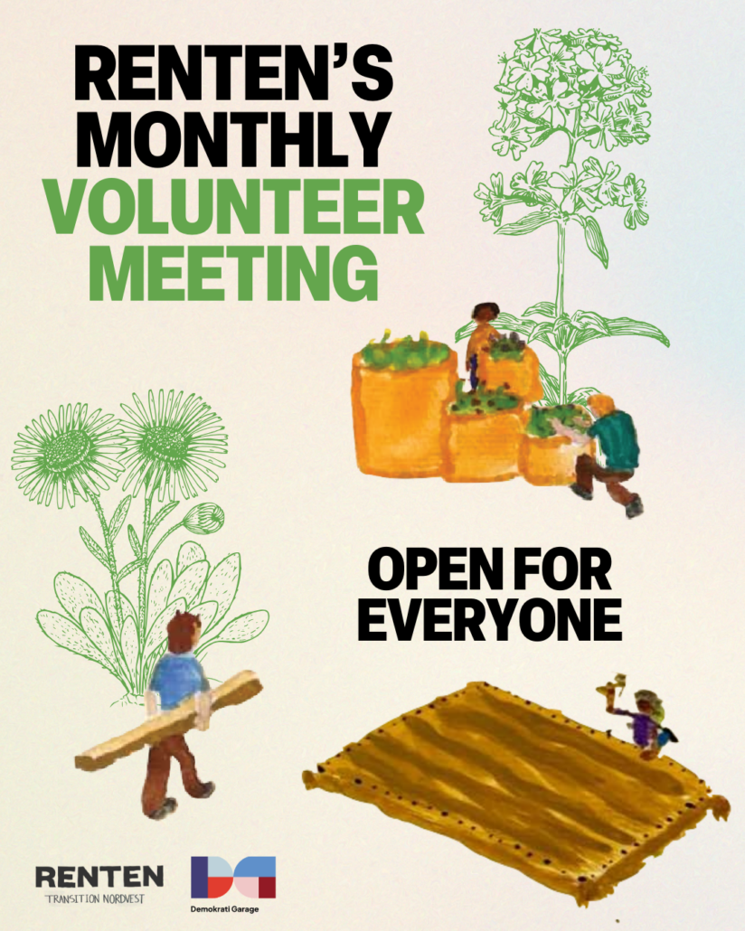 RENTEN, named after Rentemestervej, is indspired by the Transition-movement from the UK, that is based on the vision that local communities can work together for a more socially just future with lower carbon emissions, resilient communities, more active citizen engagement and a caring culture with a focus on supporting one another. Read more about the Transition movement here.