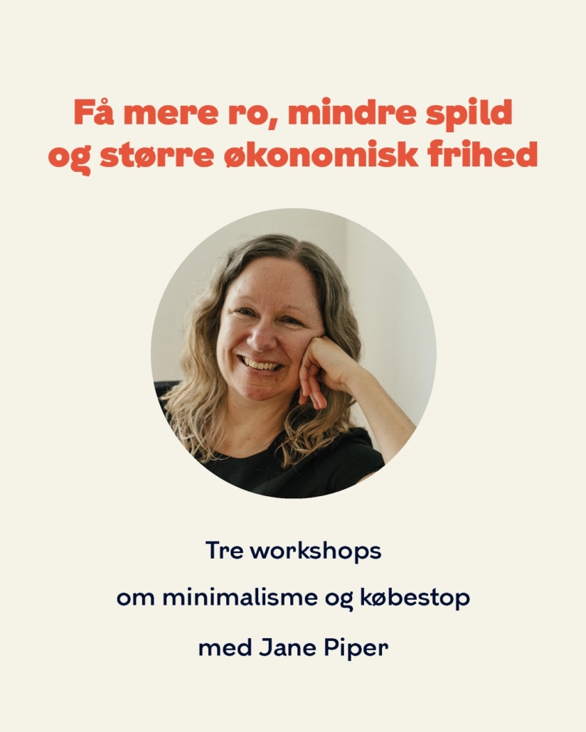 Jane Piper, en af Danmarks største stemmer inden for minimalisme og købestop, vil give os konkrete tips, ideer og værktøjer, der har skabt mere ro, færre impulskøb og større økonomisk frihed i hendes eget liv.